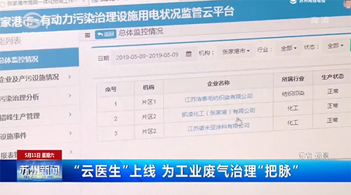 张家港市环保局科技信息科科长徐小刚解释说,工业废气治理的关键在于企业治污设备是否正常运行,此前环保部门很难精确掌握这些设备的真实运行情况,如今通过安装在企业相关设备的电力线路上的小型互感器,便可以实时监测设备运行的电力信号,这些信号会通过无线组网技术发送到数据采集端,云电力系统会结合各企业自身的生产和治理设施运行规律,通过大数据分析,实现精准监察和高效监管。如果治污设备运行异常时间超过半个小时,便会自动报警。