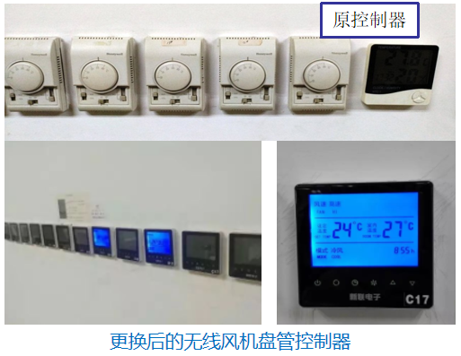 此次系统项目改造工涉及中央空调网关5台,无线风机盘管控制器800台,新风控制器32台,VRV中央空调柔性控制网关6台。
