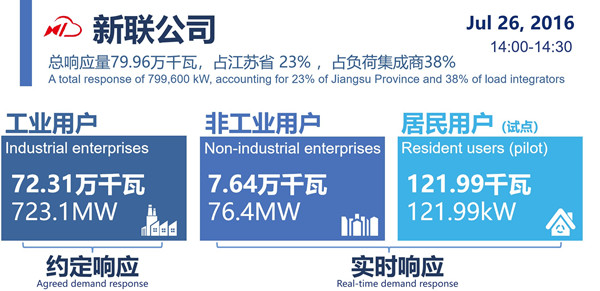 2016年新联总响应量79.96万kW,占江苏省 23% ,占负荷集成商38%,成绩领先。
