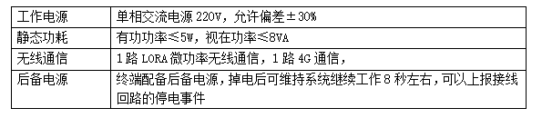 终端外形尺寸为62.8mm×48mm×81.8mm;终端采用开口式设计,可安装在直径为(6~15mm)的线缆上。