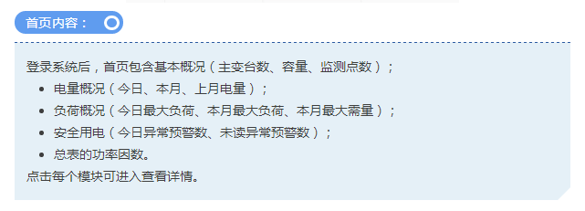 配用电监测与管理系统的用户不仅可以直接登录系统。系还可以直接快速查看四大常用功能。