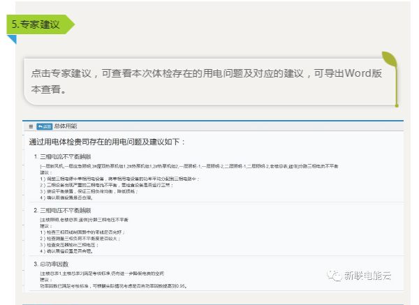 “专家建议”功能根据您企业设备运行工况存在问题给出合理建议;