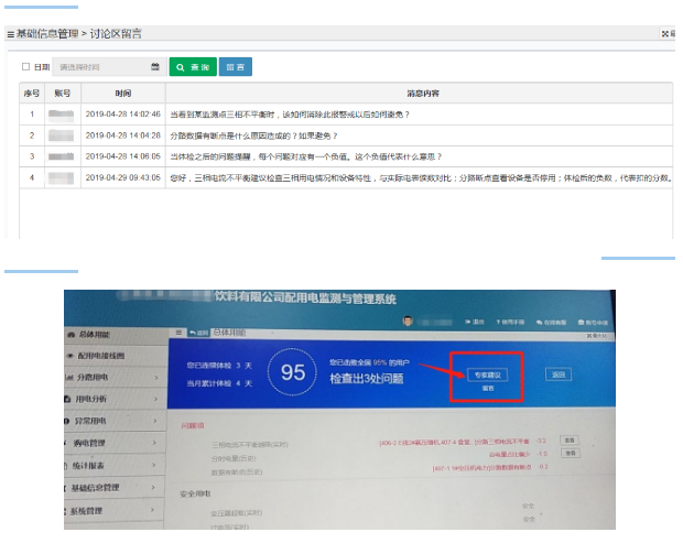某饮料有限公司通过用电体检留言:当看到某监测点三相不平衡时,该如何消除此报警或以后如何避免? 分路数据有断点是什么原因造成的?如果避免? 当体检之后的问题提醒,每个问题对应有一个负值。这个负值代表什么意思?