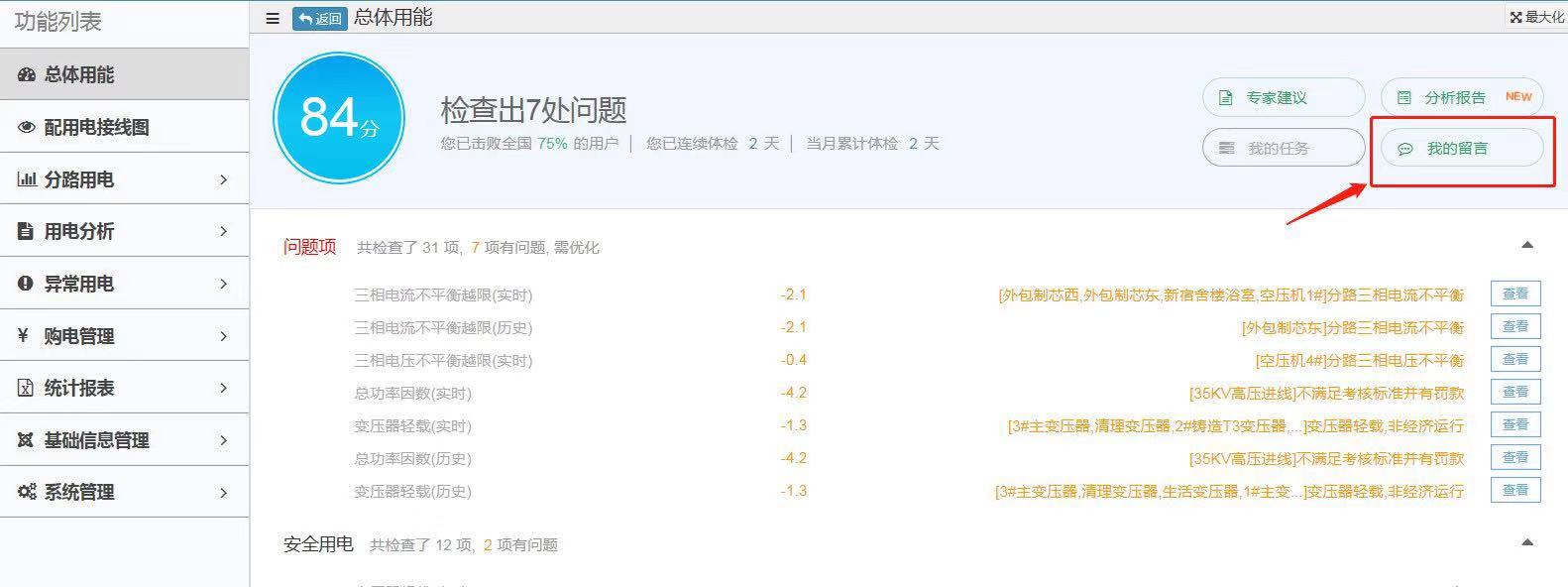 并通过用电体检留言功能与专家沟通体检分值改善用电质量,最终获得满分100分的体检分值!